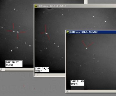 Per il rilevamento del fenomeno e’ stata utilizzata la tecnica del drift_scan consistente nel fare la ripresa dell’occultazione con il CCD e con il telescopio da 400 mm fermo senza l’inseguimento del cielo, le stelle in tal caso invece di avere aspetto puntiforme diventano striscie.